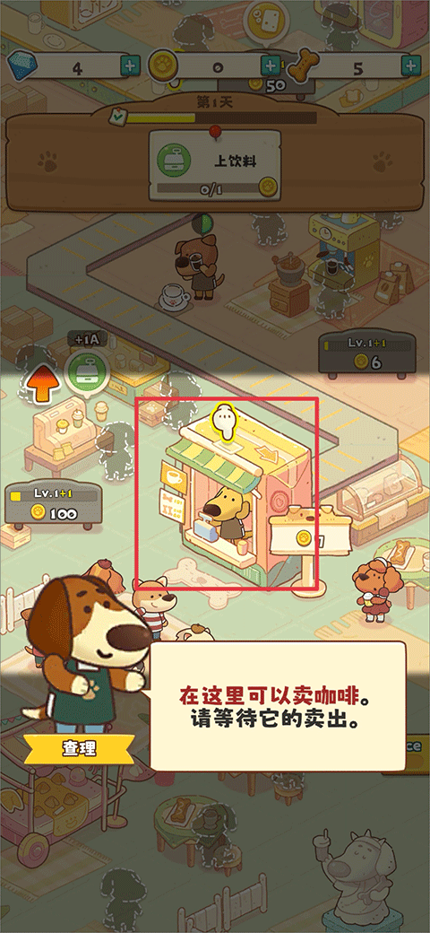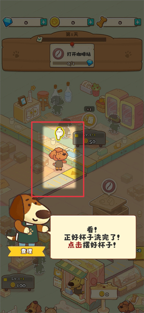 2、然后去点负责刷杯子的那只狗,让它赶紧干活,不然没杯子用。