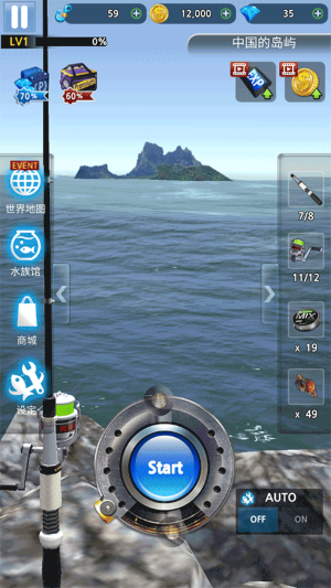 5、当你准备好之后,就按下那个显眼的“start”按钮,开始你的钓鱼之旅吧。