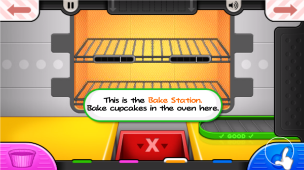 接着移动到烘烤站,把纸杯蛋糕送进烤箱,然后盯着时间,别烤糊了。