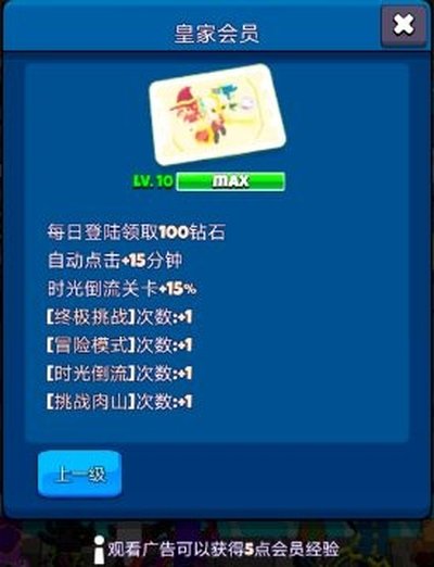 讲真,VIP经验算是除了金币之外第二不缺的资源了。我估计着,正常玩20天左右就能肝到满级V10。满了之后每天需要看的广告就少很多了,福利感还是挺足的。