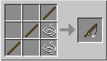 5、钓鱼竿。制作材料很简单,三根木棒两根线(打蜘蛛掉)。除了能钓上来各种鱼,脸好的话还能钓到附魔书之类的宝贝。