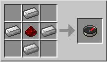 7、指南针。四个铁锭围着一个红石。指针永远指着你的世界出生点,或者你最后睡过的那张床。路痴防迷路神器,拿在手里就能找到回家的路。