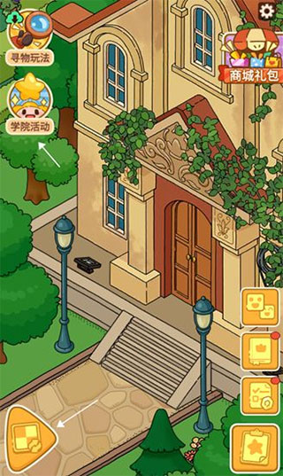 先把教学楼大门前那块地打扫干净,搞定“路灯也得支棱起来”这个任务,学院活动就解锁了。