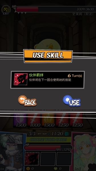 6.除了普通卡牌,还能用技能。角色自带一个“羁绊”技,能让你旁边的伙伴放个大招。
