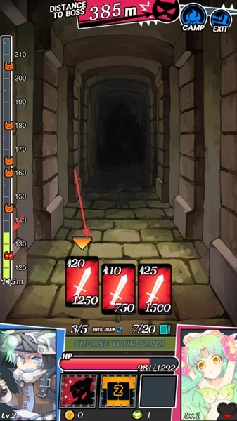 8.给你们个小技巧。看到卡牌左上角的那个数字了么,那个代表你能前进几步。出牌前可以先点一下卡牌,观察左边那个进度条,就能提前判断下一步会不会踩到雷(遇到怪)。