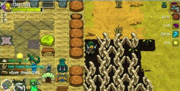 战斗不是无脑砍。得观察怪物的攻击模式,走位躲技能,跟玩魂斗罗似的。还能造一堆小道具辅助,什么放火的、电击的、时间变慢的,花样贼多。打不过就造道具,总有一款适合你。