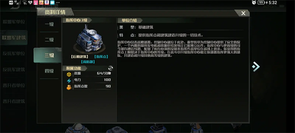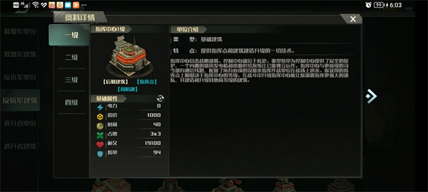 升至2级时,每分钟可获得46资源、71电力与60指挥点数。
