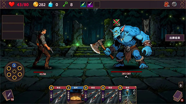 2、通过选择不同卡牌和道具,打造最适合当前挑战的组合进行回合制战斗;