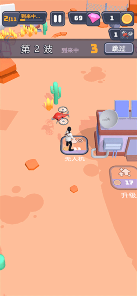 3、要是感觉火力不够,可以去地图上的无人机商店那儿,用金币买个小跟班帮你一起打,能分担不少压力。