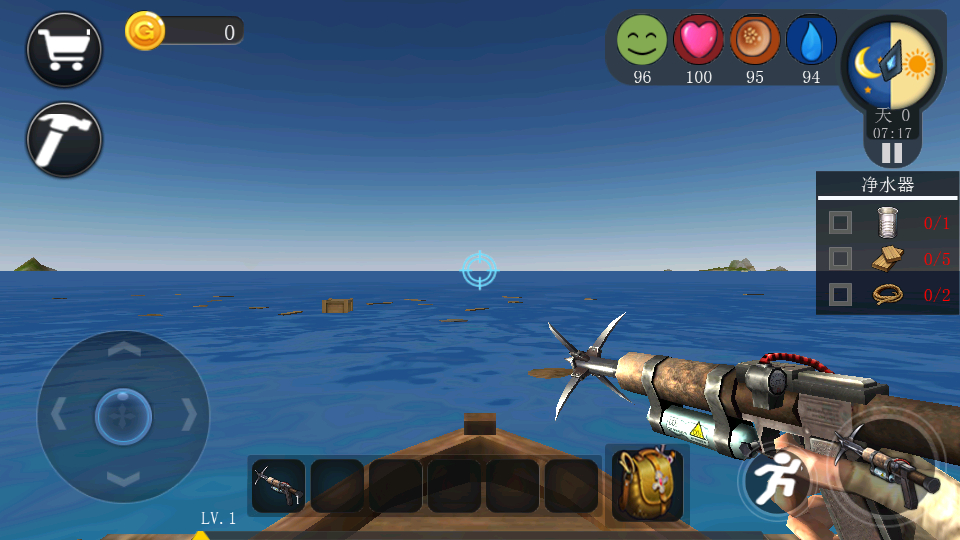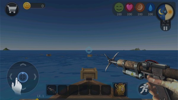 2、加载条读完,恭喜你,成功被扔到这片破海上。周围除了水就是水,挑战和机遇并存嘛,老套路了。