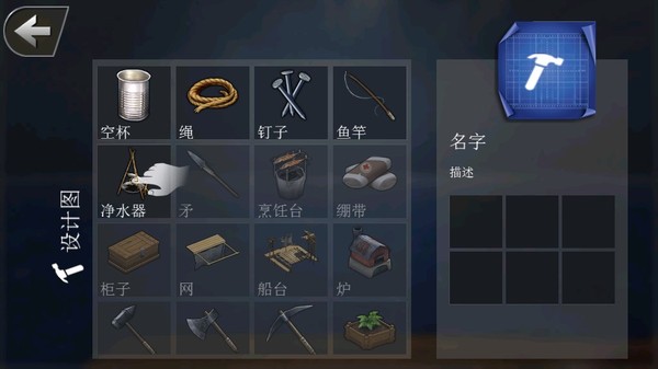 4、捞上来的破烂别扔,都能在工作台上合成各种有用的家伙事儿。什么锤子斧子,都能帮你更好地对付这鬼天气和各种突发情况。