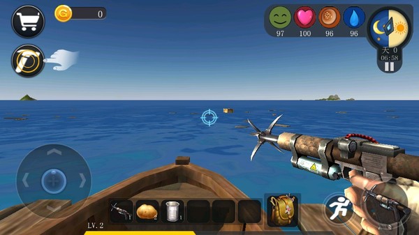 3、开局一条船,装备全靠捞。你唯一的家当就是手里的钩子,对准海里漂的那些木桶、板子,使劲扔过去就对了,这是你活下去的根本。看我截图里这操作,就这么简单粗暴。