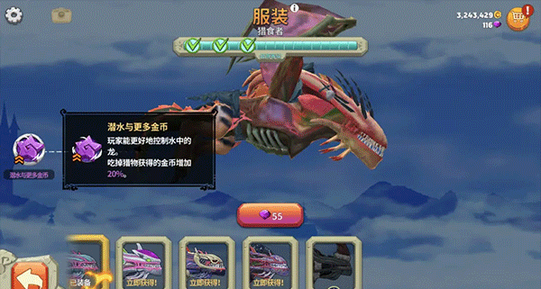可以解锁各种奇葩服装,让你飞得更快,火喷得更猛,吃得更多。