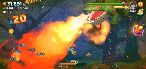 c、特殊功能: 特殊龙都有自己的绝活,比如冰龙冲刺能冻人,电鳗龙能放电。这些技能能帮你更快地清怪拿分,玩起来也更有意思,上手难度也低一些。