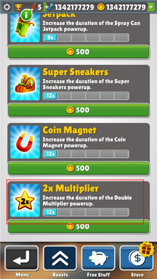 1、商店里能买到不少加倍数的道具,开跑前用一个,分数直接翻倍。