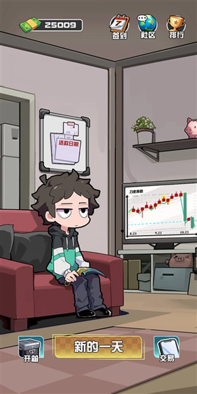 3、它给你加了个限时任务的机制,每周都得还钱,这就增加了点挑战性。不是那种可以无限挂机的玩法,让你得时刻关注市场,玩起来节奏感更强。