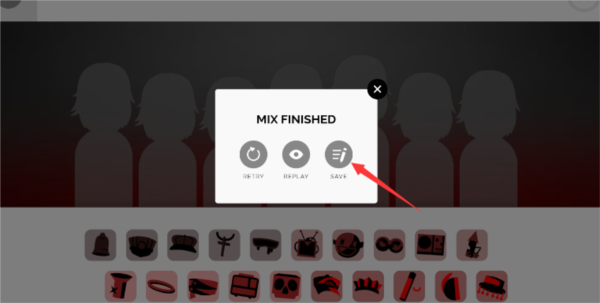 5、你可以完全自由搭配,组合出你自己觉得最牛的混音。搞定之后,游戏里有分享功能,可以直接发给朋友们炫耀一下。