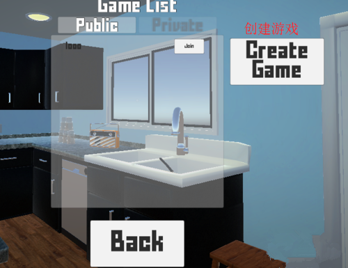 点了之后,你会发现 Create Game 按钮下面多了个搜索框,这是方便你朋友在房间多的时候快速找到你。当然,他要是眼神好直接在列表里看到你了,点 Join 就行。我们自己建房的话,就点创建游戏,这时候会比建公共房多一个输密码的选项。把房间名和密码都填上,点下方创建游戏然后把密码告诉朋友,让他搜房间名进来就OK了。那个 Show 的勾打上能看见你输的密码是啥,免得手滑输错。