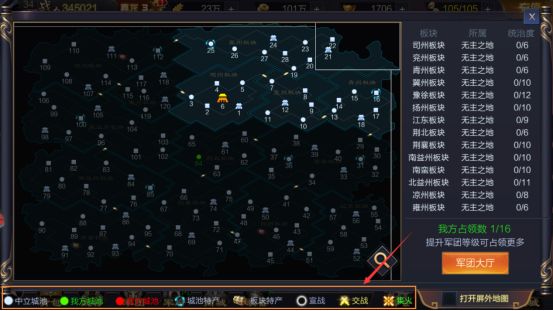 游戏以军团为核心扩张地图,单人无法占领城池。
