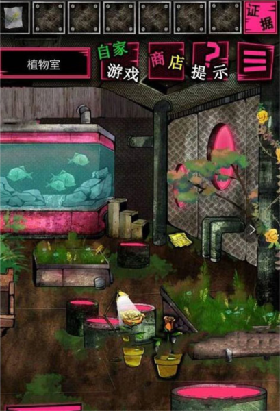 回二楼植物室,点左边的花盆,发现凶器没了。