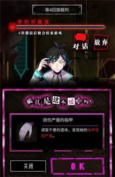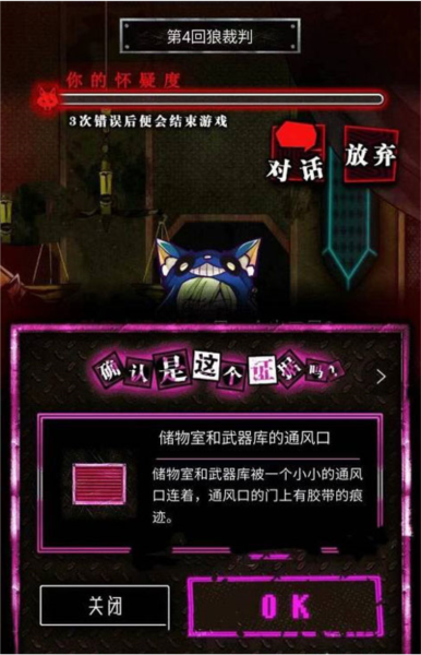 友情提示:第一章狼审判要是选错三次,怀疑值直接拉满被处刑,能解锁一个结局【第一次的绞刑】。