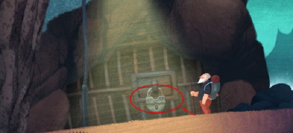 9、走到牢房门口的时候,场景会自动放大,这时候我们去点一下牢房大门上的那把锁,就会触发老人的回忆剧情了。