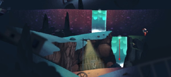 5、新的场景里能看到一个瀑布(没错,海底也有瀑布),从这儿跳下去。