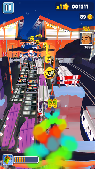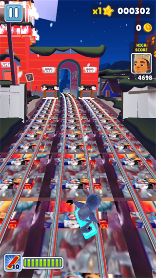 5、跑的时候屏幕上会刷出滑板道具,赶紧点一下,就能踩着滑板冲一段,等于多条命。