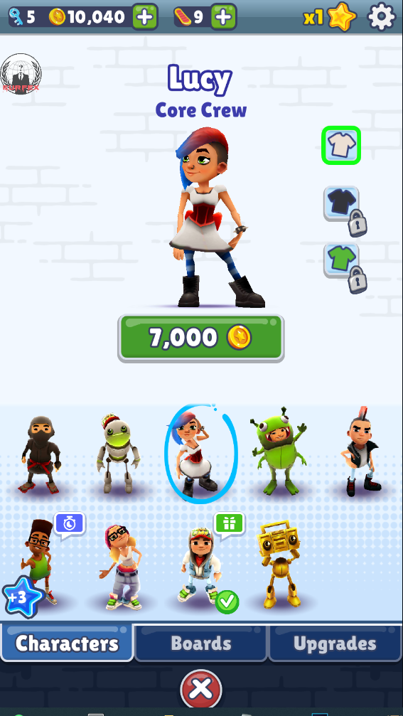 2、进去就能看到你现在有多少金币,我这里显示10040个。这点钱目前只够买这个叫【Lucy】的妹子。(当然这是正常玩法,魔改版你懂的)