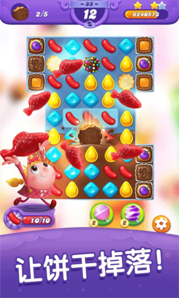 3、这游戏的主要目标就是解救那些被困住的动物好友。你需要通过移动糖果,凑成三个或更多的组合来消除它们,分数越高,通关评价也越好,想拿高星通关就得好好规划每一步。