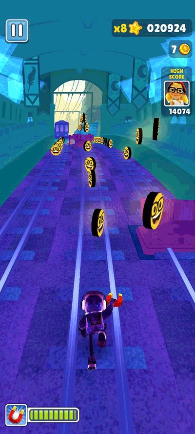 《地铁跑酷lz阴森车站版》是在经典跑酷游戏《地铁跑酷》基础上改编的魔改版本。作为一款经久不衰的热门作品,《地铁跑酷》自智能手机普及以来便深受玩家喜爱,其简单直观却极具节奏感的玩法,一直保持着极高的人气与可玩性。本次推出的阴森车站版本,在保留原作核心玩法的同时,对整体视觉风格进行了大胆调整。游戏场景以蓝紫色调为主,营造出略带阴森的氛围。初看可能会带来些许压迫感,但随着游玩时间增加,这种风格反而为游戏增添了一种独特的趣味与反差感,使整体体验更加新鲜。