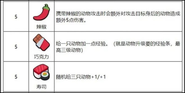兔子(3/2):你给别的队友喂食物时,它能给那个队友额外加+1/+2/3血。