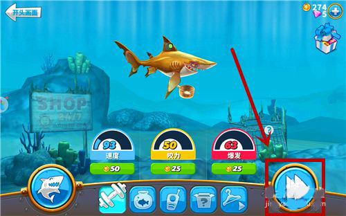 2、积分条满了(进行游戏就能获得积分)之后解锁该型号的鲨鱼,然后在使用金币购买。