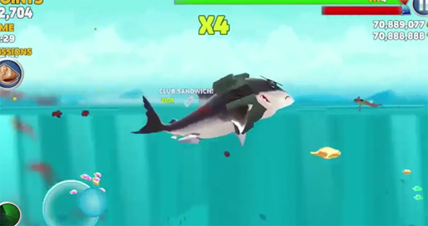 字母:玩家在海中收集完HUNGRY全部字母后,鲨鱼就会巨大化,短时间进入无敌模式,什么都能吃。