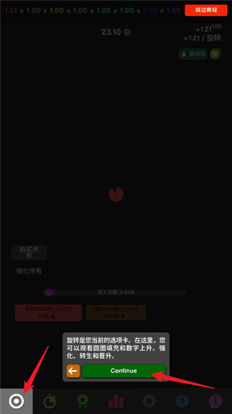 2、在这里,您可以购买建筑物。它们可以增加圆圈的速度。强化是建筑物的转生。