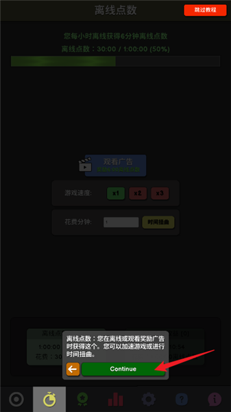 5、离线点数:您在离线或观看奖励广告时获得这个。您可以加速游戏或进行时间扭曲。