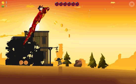这个boss就有点麻烦了,它每过一会车顶就会射出滚动刺球,造成中级伤害,车上两个劫匪,只要我们把这2个打掉就不会射出刺球,不过在这个过程中你有可能会中枪,劫匪打到龙头的话……通常会直接失败
