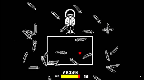 轮到敌人攻击的时候,你就得在一定时间内躲弹幕了,这就是你的防守方式。被弹幕打中就会扣血,这个前面也提过了。