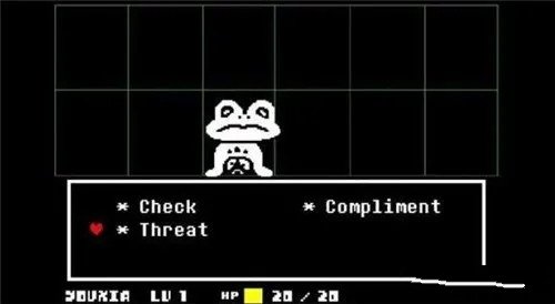 “act”动作选项提供了除直接消灭怪物以外的其他行动方式。。你选了之后,怪物会给你相应的反应,反应内容会用文字或者画面的形式显示在上面的对话框里。