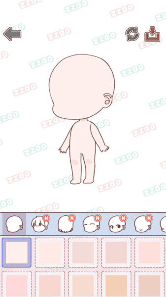 5、解锁服装和娃娃后,就能开始打造你的专属卡通形象了。脸型、皮肤、发型、妆容这些细节,全凭你自己的喜好来定。