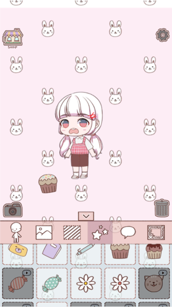 6、用海量的时装打扮你的娃娃,再给屏幕背景加上你捏的角色和一些可爱的小贴纸,仪式感拉满。