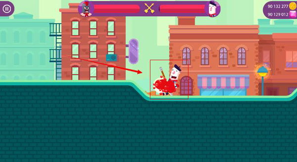 3、射中了就完事,没射中就得慢慢调整。记住,每个角色都有特殊技能,武器扔出去以后再点一下屏幕就能触发,别忘了用。