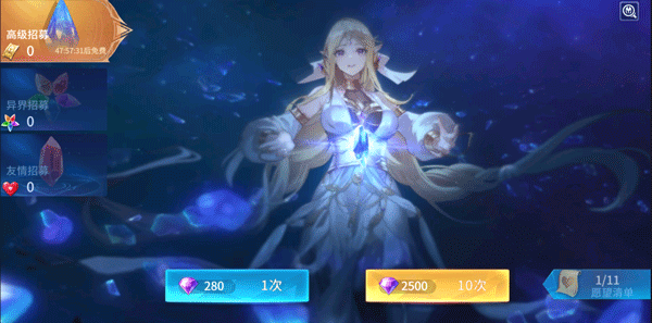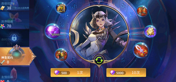 这个功能得等你推到主线22-35,并且有一个英雄升到觉醒(黄星)才会开。可以自己选定一个英雄来抽,2800钻石十连。好处是能稳定捞同一个英雄,缺点是每个月有次数限制。