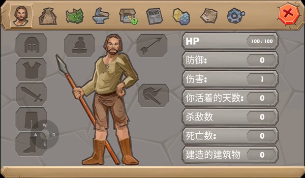 3.有了石镐之后,总算不用再靠拳头打天下了。但用石镐砍树,掉的木头很少,大部分都是树枝。用石镐去敲那些大石头,能出石头和碎石,这是做石斧和石矛的材料。这时候你应该也升级了,要是联机玩,建议先点负重,单人档初始负重1000,除了负重可以随便点,看你喜欢啥。分配完属性点后便会获得技能点,应立即用其学习图纸。。