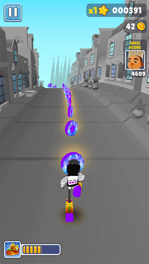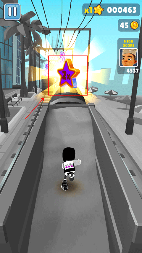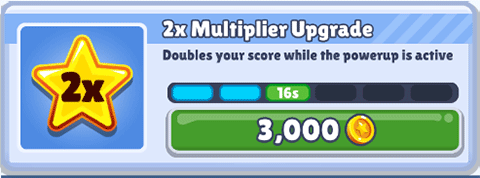 双倍得分(2X Multiplier)这个道具,效果很简单粗暴,在有效时间内,你吃一个金币获得的分数直接翻倍。