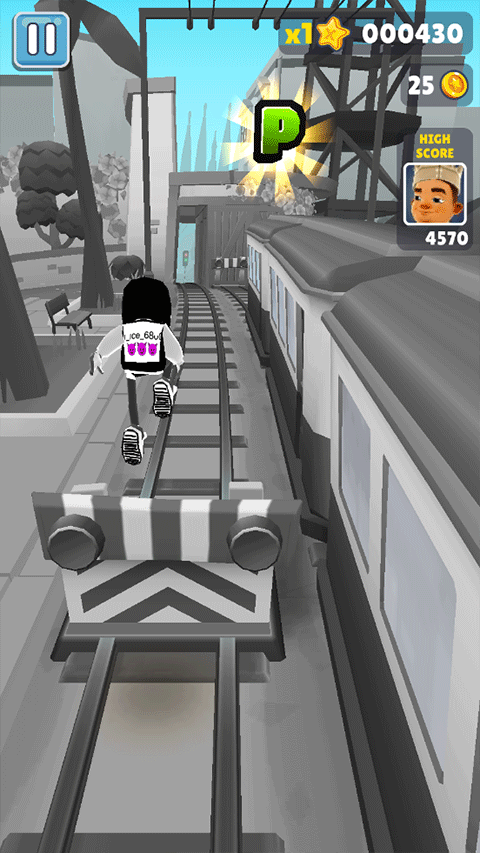 拿到飞行背包(Jetpack)以后,你就能直接上天了。在天上飞的时候,地面上的火车和障碍物都跟你没关系,但天上的金币你还是可以照常吃的。