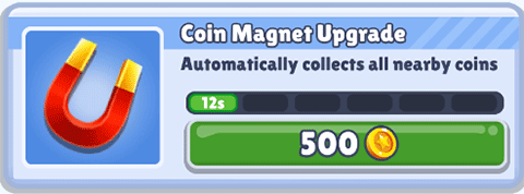 捡到磁铁(Coin Magnet)之后,在它生效的时间里,轨道上所有的金币都会自动飞向你,跟开了挂一样。