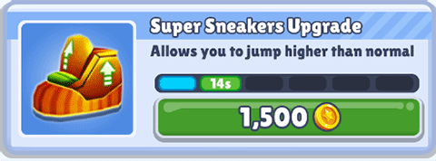 穿上运动鞋(Super Sneakers)之后,你就能跳得特别高。不过得小心点,要是跳起来的时候脑袋撞到天花板,而且你又没踩滑板,那游戏就直接结束了。
