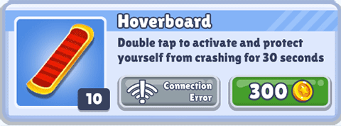 跑的时候快速双击屏幕,就能激活滑板(Hoverboard)。这玩意儿等于给你加了条命,在滑板持续时间内,撞到东西只会消耗掉滑板,人没事。