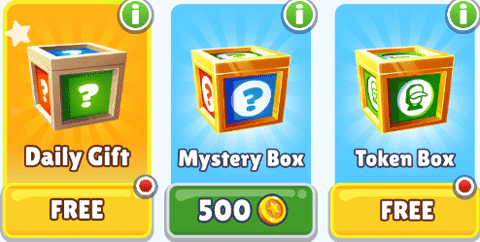 宝箱(Mystery Box)可以在跑酷时捡到,或者在商店里买。打开能随机获得金币、一次性道具、奖牌或者人物。